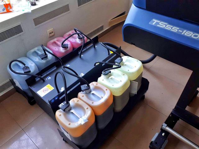 Купуючи спеціальну СНПЧ від Mimaki ➾ TS55-1800 може друкувати прямо з 10 ㎏ каністр, бюджетними оригінальними сублимационными чорнилом SB610 в конфігурації CMYK. Такий принтер здатний виробляти велику кількість текстильної продукції, як для рекламного ринку, так і для ринку одягу.